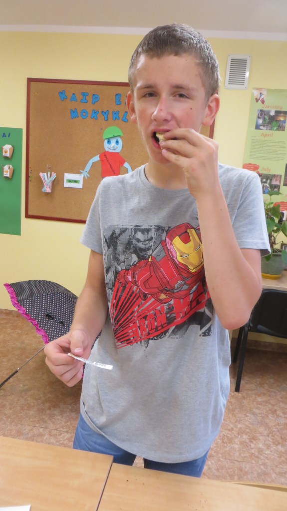 Po smagių ir nerūpestingų vasaros atostogų nei man, nei mano mokiniams nesinori pulti prie vadovėlių. Todėl šiuos mokslo metus pradėjome netradiciškai pateiktomis užduotimis. Iššifravę užkoduotą laišką ir susipažinę su jame minimais naujais dalykais, vaikai susėdo prie vaišių stalo, kur jų laukė sausainiukai su paslaptimi. Smagu buvo stebėti savo vaikus, atsargiai išvyniojančius sausainiuose paslėptus pageltusius nuo karščio raštelius, kuriuose buvo įrašyti įvairūs palinkėjimai.