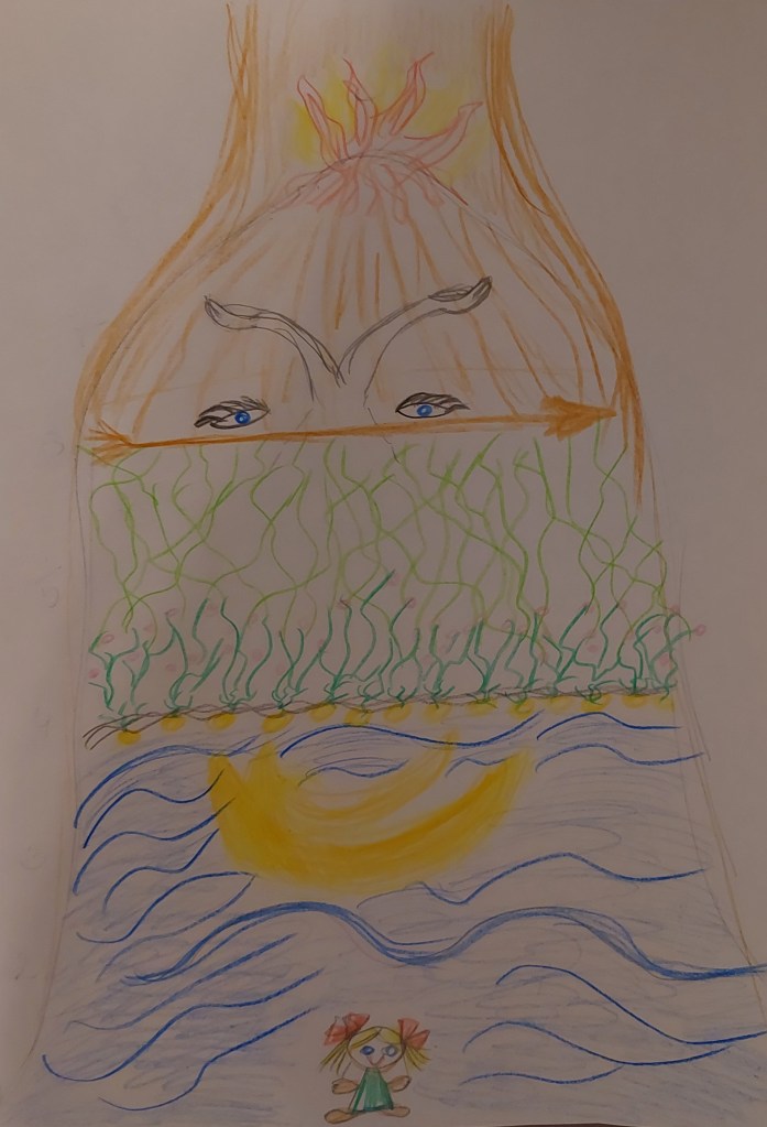 „Iš pradžių buvo chaosas“… Taip prasideda pasakojimas apie graikų dievų kilmę. Mano piešinyje iš pradžių buvo Olimpo kalnas.