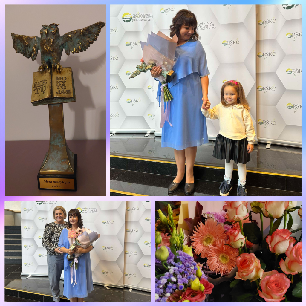 Spalio 3 dieną Klaipėdos dramos teatre, aidint audringiems plojimams (nors ir nesu aktorė), man buvo įteiktas 2024 metų Klaipėdos miesto mokytojo apdovanojimas – statulėlė su plačiais sparnais knygą vartančia pelėda. Pelėda visais laikais buvo laikoma išminties simboliu. Nors gamtininkas Marius Čepulis su tuo nesutinka, tačiau aš tos versijos ir toliau laikysiuosi, nes pelėda juk buvo ir deivės Atėnės neatskiriamas simbolis.