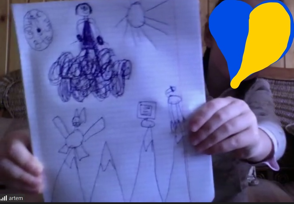 Projekto pristatymo metu pasidalinome ir netikėtu pasakų terapijos metodo pritaikymu vaikams iš Ukrainos. Atsiliepę į kvietimą prisijungti prie tarptautinės pilietinės seminarų rengimo iniciatyvos – vesti nuotolines pamokas Ukrainos vaikams, sugalvojome žaidimą „Sukurkime pasaką kartu!“, į kurį įtraukti pasakos ir dailės terapijų elementai padėjo išlieti susikaupusį nerimą ir baimę, atsipalaiduoti ir paieškoti išeities iš tokios sudėtingos situacijos karo niokojamoje Ukrainoje. Šiuo pavyzdžiu mes su Arnu norėjome parodyti, kaip lokalus, vienoje įstaigoje (šiuo atveju Rumunijos mokykloje) taikomas pasakų terapijos metodas buvo įgyvendintas globaliai: išbandytas antros šalies – Lietuvos – mokykloje ir pritaikytas trečiajai šaliai – Ukrainai.