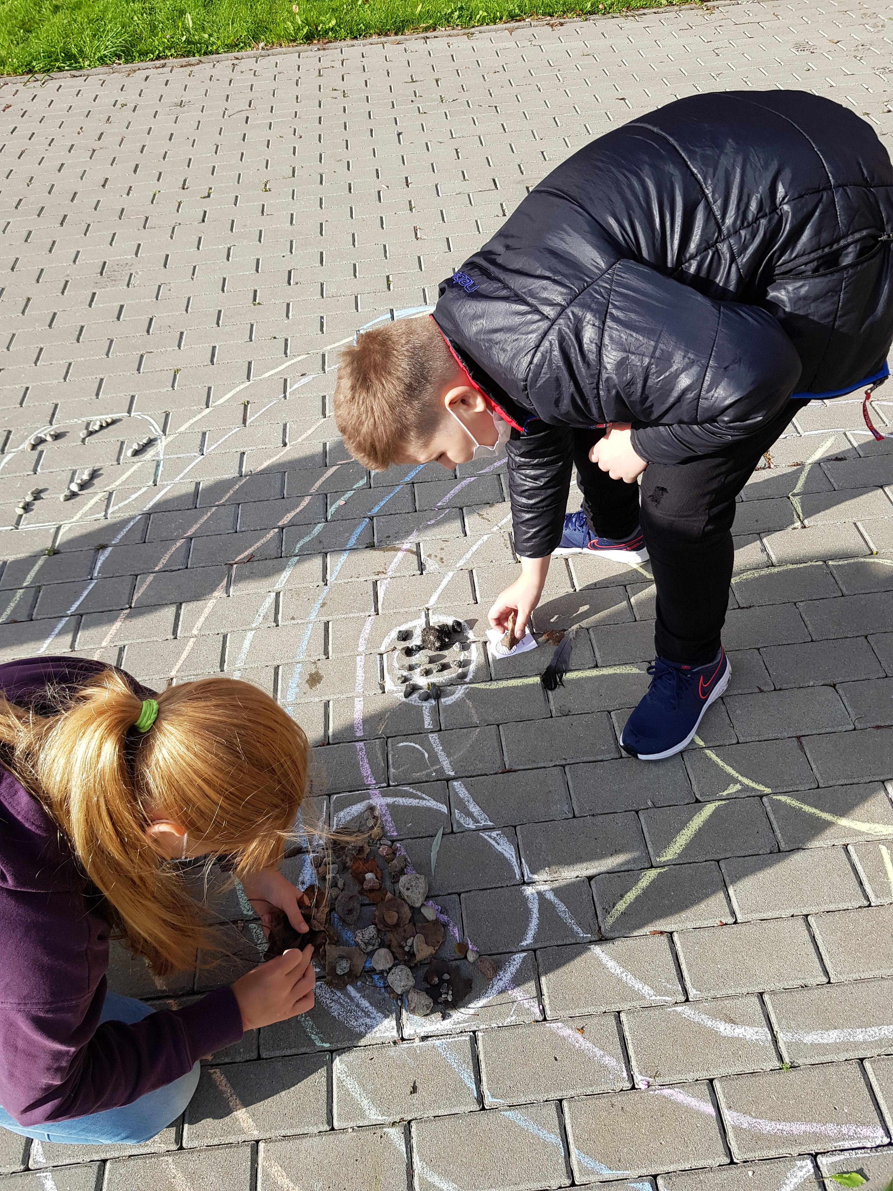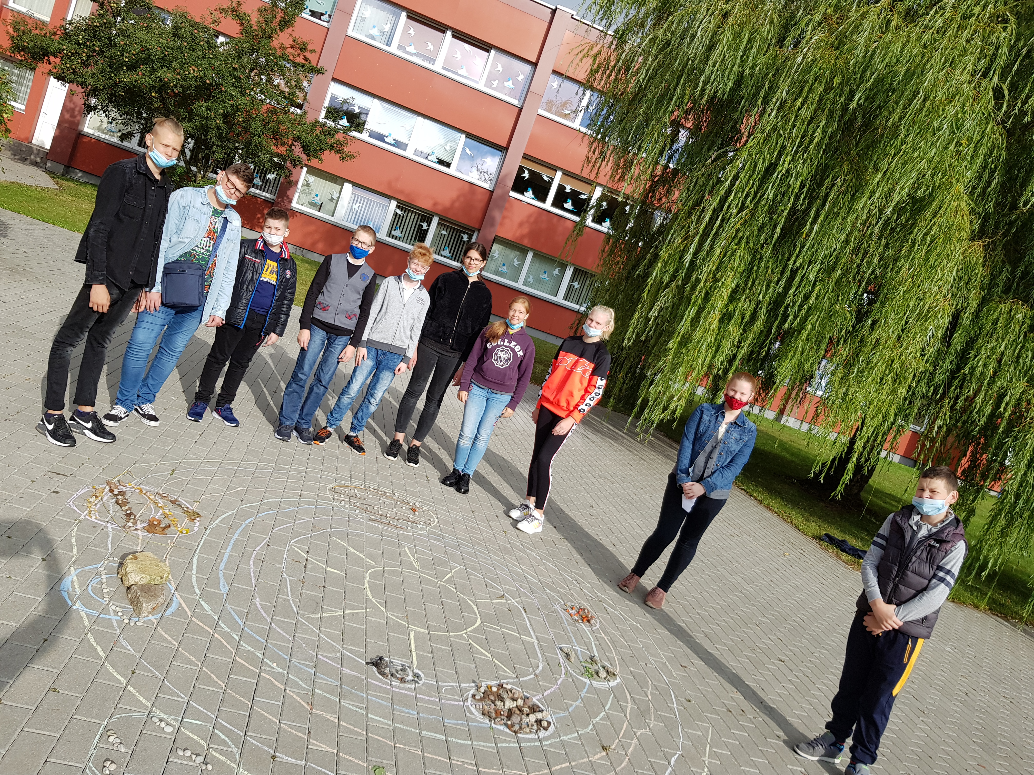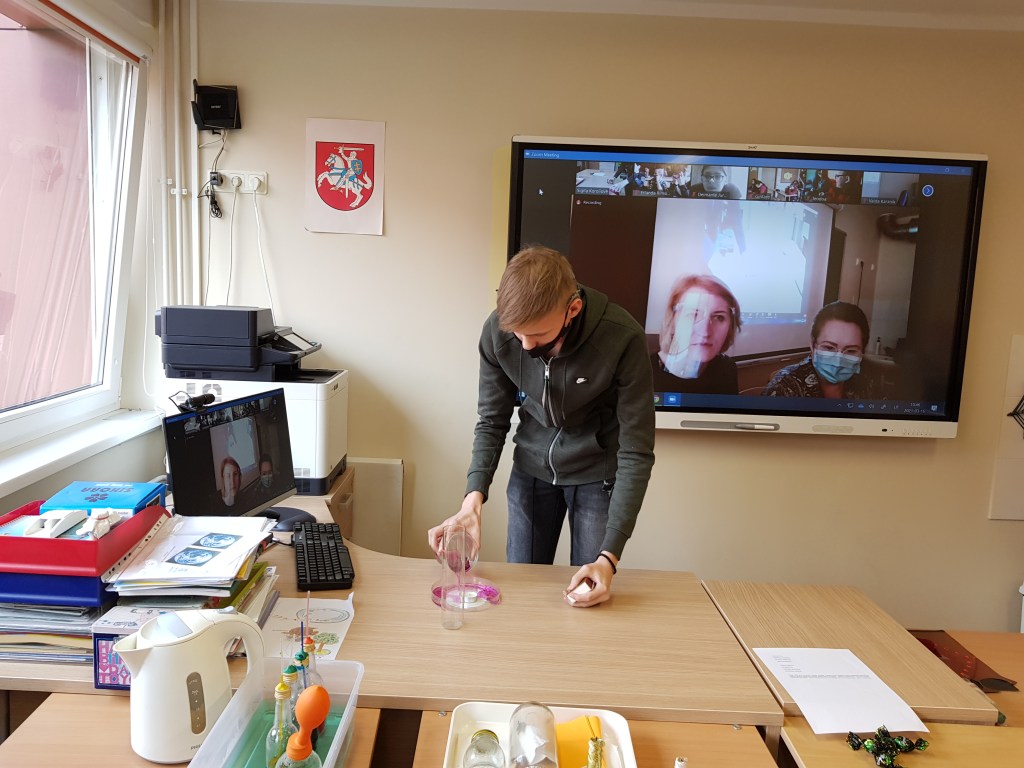 Ne visus auklėtinius, atliekančius gamtos mokslų eksperimentus, šiandien pavyko nufotografuoti: su vienais pati eksperimentavau, kitus pamiršau, nes labai jaudinausi dėl jaunųjų mokslininkų nesėkmių. Tad pasibaigus įspūdžių ir naujų mokslinių žinių dienai visi įsiamžinome prie pirmosios gamtos mokslų savaitės veiklos – stendo, skirto grįžtančių paukščių sutikimui.