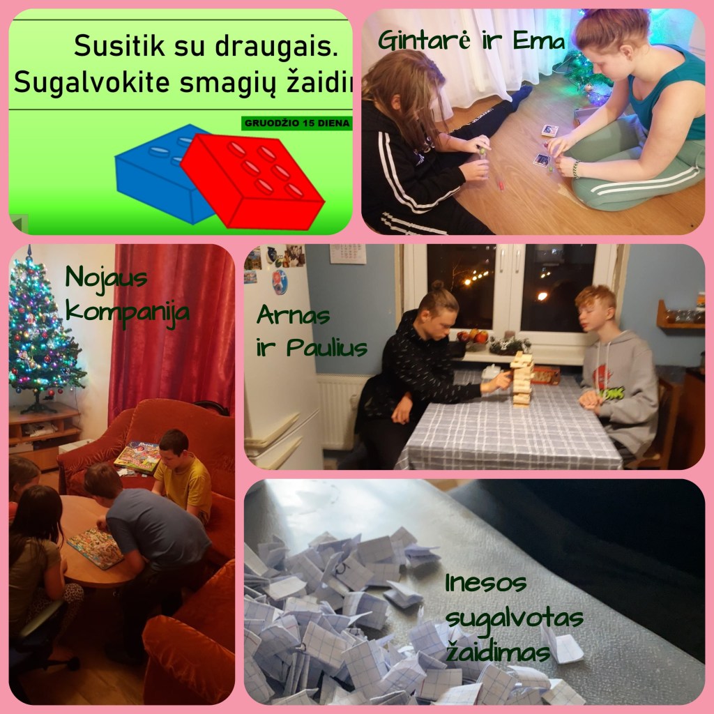 Teisingiau pasakius, turėjo vežti. Kurdama Advento kalendorių net nepagalvojau, kad viena iš užduočių susidurs su kliūtimis. Patekę į viruso gniaužtus šiuo metu susitikti su draugais galime tik virtualiai 😦 Gerai, kad mano auklėtiniai turi brolių ir seserų! Būtent jie išgelbėjo Advento kalendoriaus magiją. Smagios akimirkos nuotraukose liudija, kad BROLIAI IR SESERYS VEŽA!