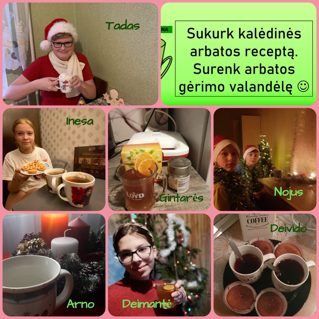 Kiekvienas paklaustas pasakys, kad Kalėdos turi ypatingą kvapą. Vieniems jos kvepia mandarinais, kitiems – imbieriniais meduoliais, tretiems – šokoladu, dar kitiems – eglutėmis… Mano auklėtinių namuose šiandien kvepėjo arbata, kurios receptą kūrė jie patys 🙂