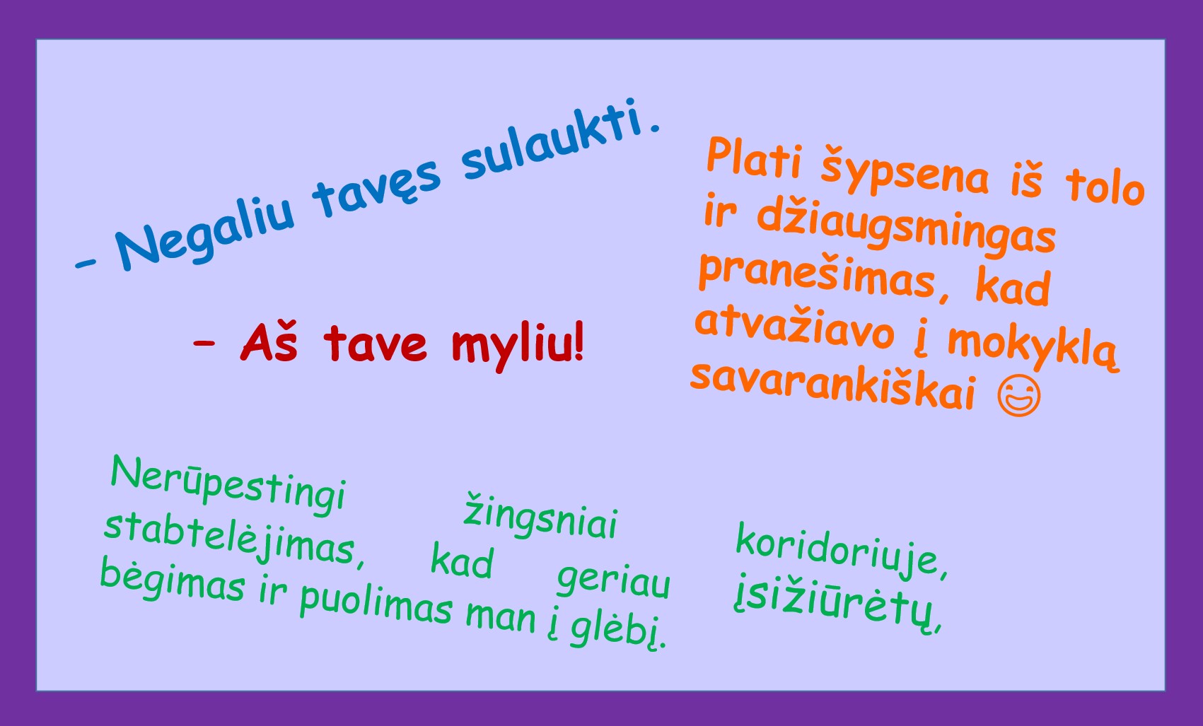 Kadangi fotografavomės nustatę automatinį režimą, nuotrauka truputį išplaukusi, bet ir mūsų nuotaikos šiandien panašios, nes lauke – pavasaris. Šlapias, bet šiltas. Nes klasėje – mokytojos gimtadienis. Jis ypatingas, integruotas į pamokas 😀 Nes esame labai vieninga komanda. Su nedideliais pasierzinimais, bet – komanda. Nes mes mylime vienas kitą. Ir tai – neapsimestinis jausmas💖