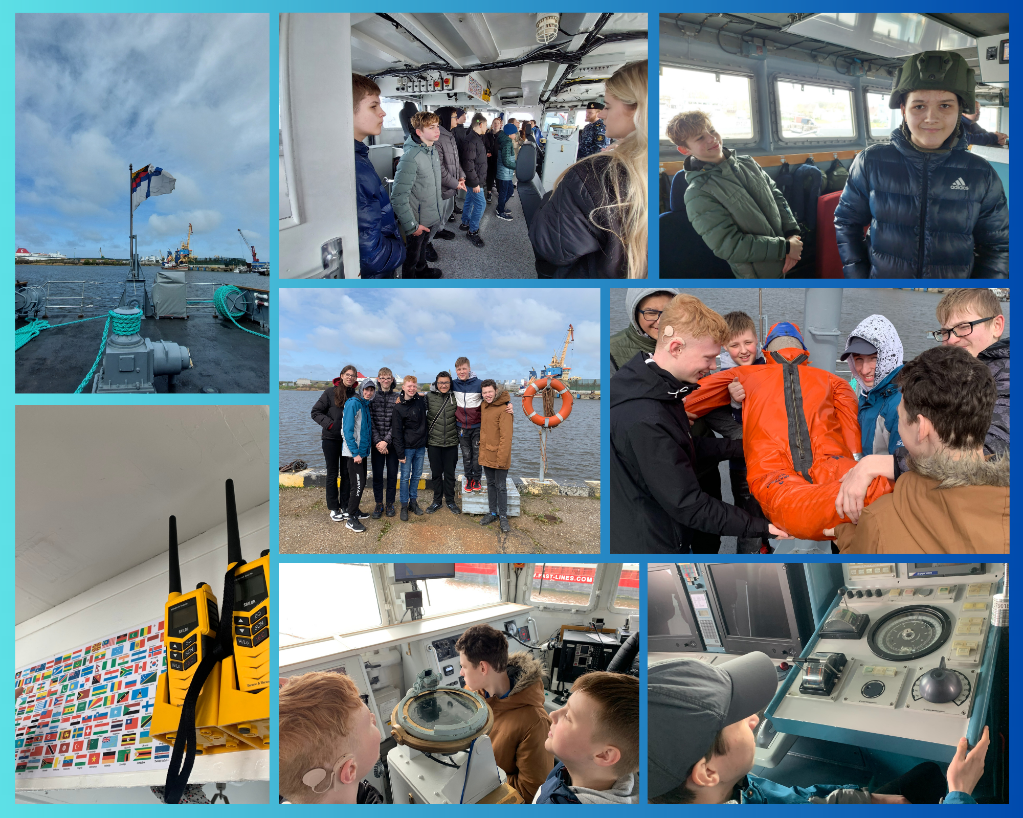 Paskutinį 2022 metų mėnesį Lietuvos Respublikos Seimo kanceliarija, bendradarbiaudama su Lietuvos kariuomene, pakvietė visos šalies mokinius į edukacinį projektą „Aš esu pilietis“. Pilietiškumo konkurse dalyvavome ir mes, sukūrę filmuką „Kol žiburys lange, man tie namai priklauso“. Deja, bet patekti į nugalėtojų trejetuką nepavyko, todėl netikėtas skambutis ir klausimas, ar jūs dalyvavote konkurse, nustebino. Išgirdusi teigiamą atsakymą skambučio savininkė pasiteiravo, ar nenorėtume apsilankyti Lietuvos kariuomenės karo laivų flotilėje. Atsisakyti tokio pasiūlymo tikrai nenorėjome! Tad balandžio 26 dieną, po ilgų susirašinėjimų ir derinimų (juk taip paprastai nepateksi į karinį laivyną), atsivėrė uždaros teritorijos, kurioje yra prišvartuoti kariniai laivai, vartai. Mums pavyko apžiūrėti du laivus – „Hunt“ klasės priešmininį laivą „Kuršis“ ir „Flyvefisken“ klasės patrulinį laivą „Žemaitis“. Vaikai sužinojo, iš kokių medžiagų pagaminti kariniai laivai, susipažino su laivų valdymo sistemomis, ginkluote, suprato, kas yra jūrlapis, išmoko keletą spalvingomis vėliavėlėmis perduodamų ženklų, išsiaiškino, ką laive veikia ryškiu kombinezonu vilkintis manekenas Oskaras, įvertino karinio šalmo svorį, o kai kuriems netgi teko išgyventi didelio bangavimo akimirką.