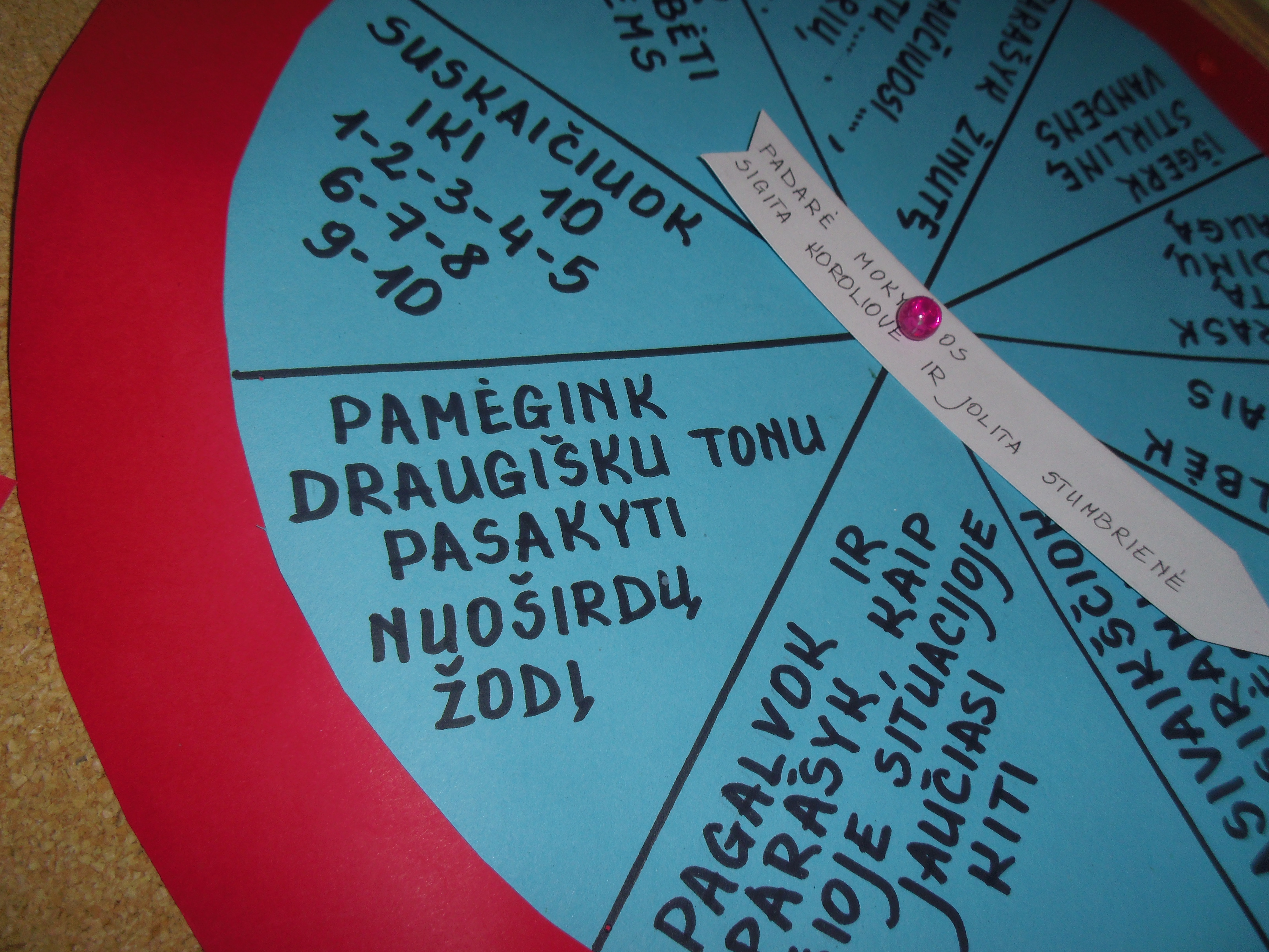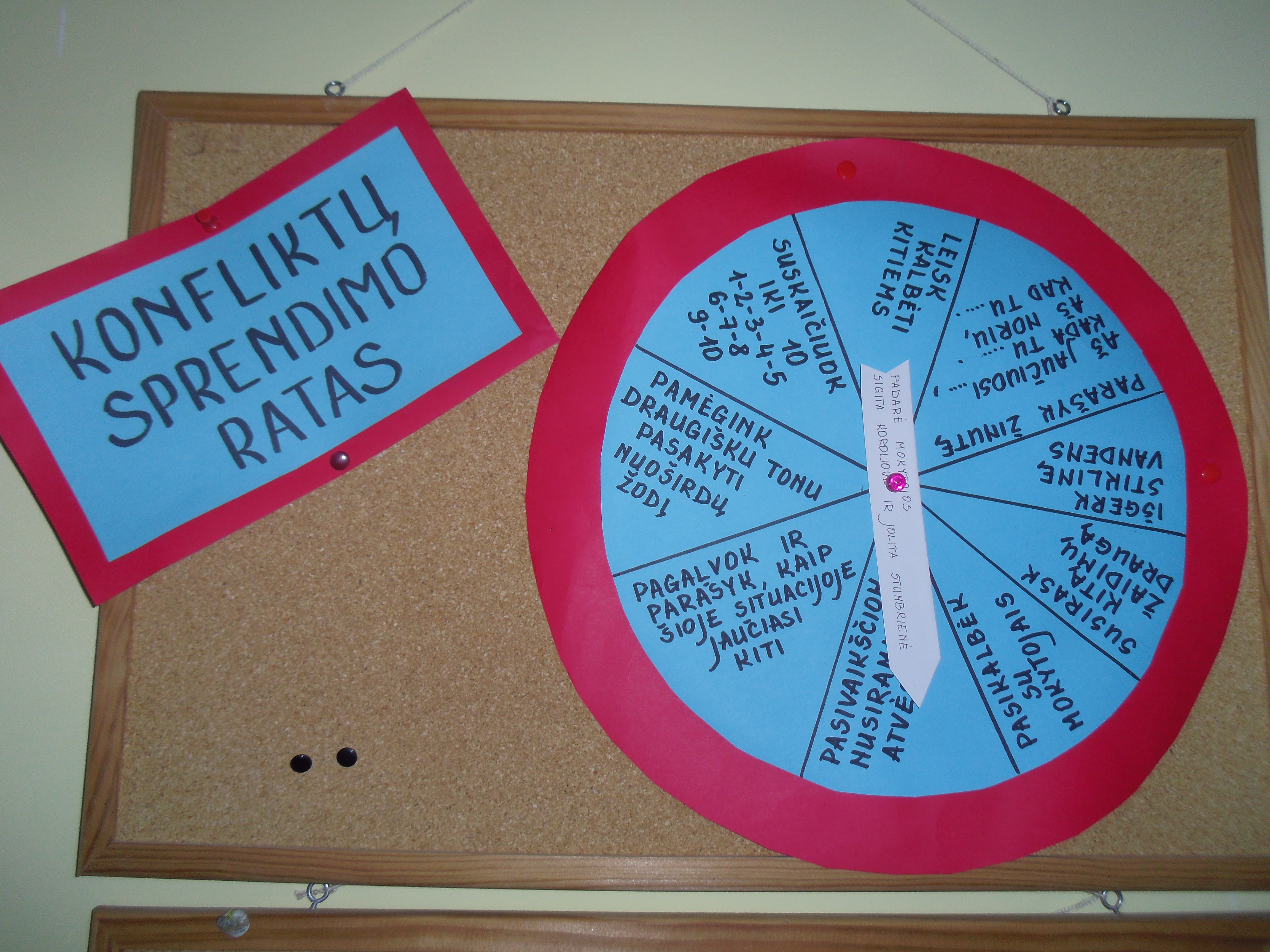 Deja, bet laiko ratas sukamas tik pirmyn. Kad ateityje nereikėtų kaltinti savęs dėl neapgalvoto veiksmo, su kolege ir bendraminte Jolita savo mokiniams sukūrėme konfliktų sprendimo ratą, kuris padės užgesinti nesantaikos kibirkštį ir mokys pakantumo, savitvardos, pagarbos kitam žmogui.