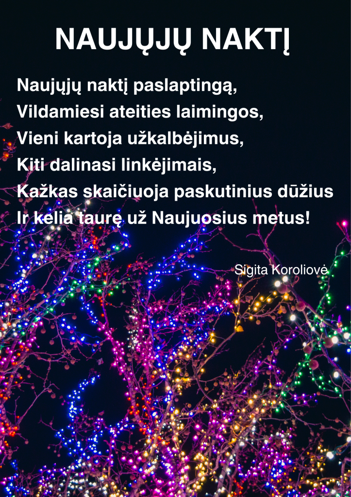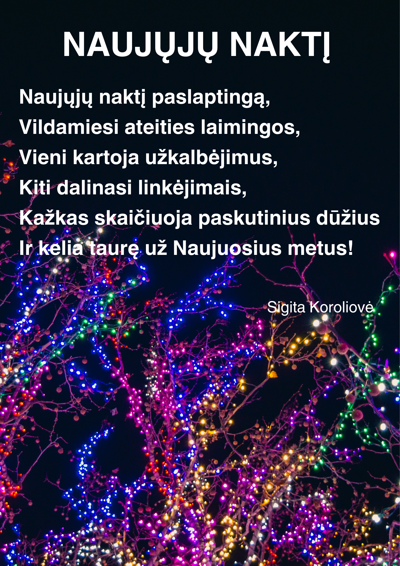 Daugiau sveikinimų SVEIKINIMAI KALĖDŲ IR NAUJŲJŲ METŲ PROGA