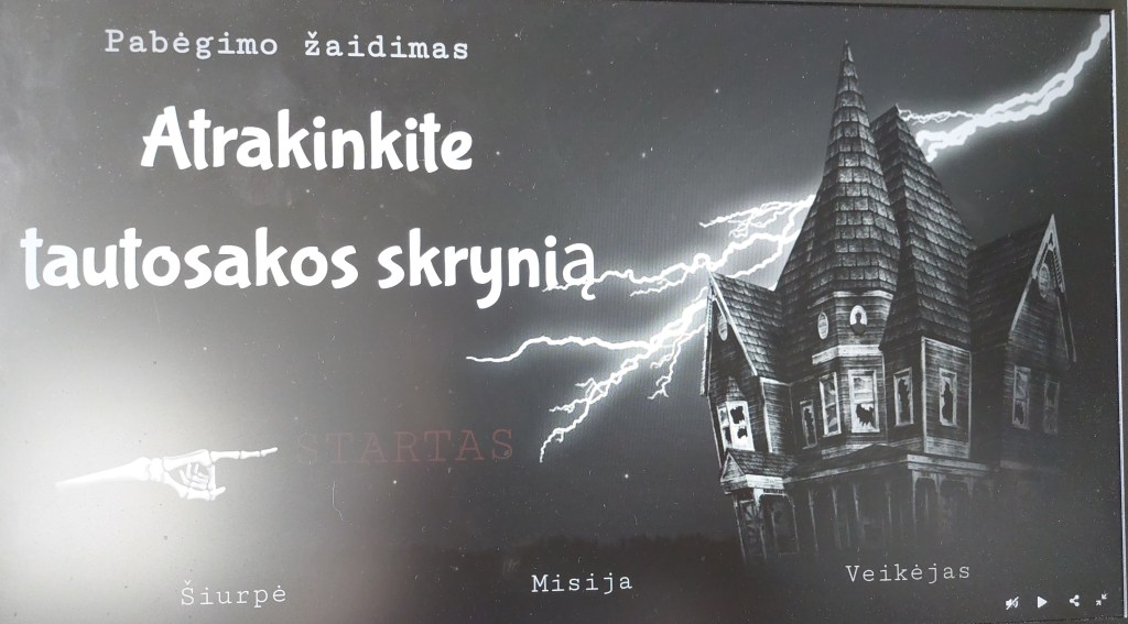 Edukacinis užsiėmimas Žeimelio bibliotekoje buvo viena iš daugelio Pakruojo rajono savivaldybės Juozo Paukštelio viešosios bibliotekos vykdomo projekto „Mūšos kraštą žodžių skryn“ veiklų. Neįprastai skambantis ir projekto, ir mano užsiėmimo pavadinimas „Atrakink tautosakos skrynio skaitmenėn raktel“ leido suprasti, kad Pakruojo krašte vaikai auginami ir ugdomi tarminėje aplinkoje. Ir ne tik tarminėje, bet ir etninėje. Nors įsijautusių į šiurpės veikėjų vaidmenį vaikų iš rūsio išleisti nenorėjo šiems laikams labiau tinkantis personažas Raudonakis, tačiau jo užduotys padėjo žaidėjams prisiminti ne vieną primirštą tautosakos žanrą: mano jau paminėtą šiurpę, skaičiuotę, užkalbėjimą…