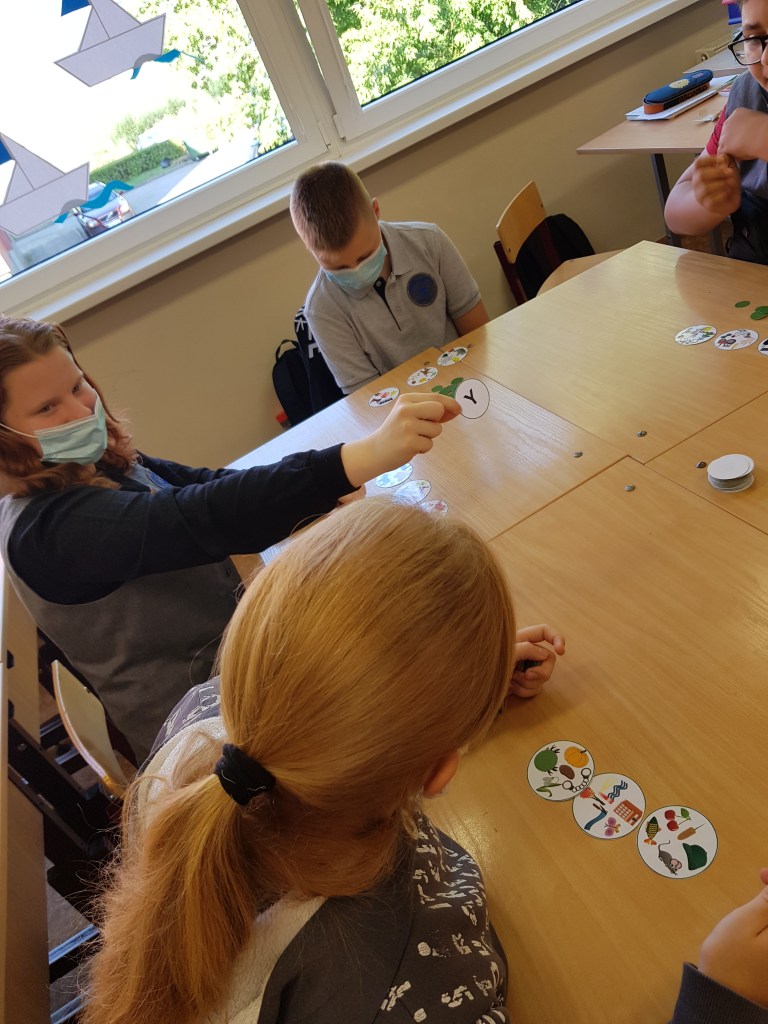 Mažieji žaidžia jungdami vienos spalvos apskritimus, kurių galima pripiešti daugiau, nei yra popieriaus lape. Jeigu pavyks, vaikai jungs juos skirtingomis linijomis pagal kortelėje esančius pavyzdžius. Jeigu rankutės dar nemoka vinguriuoti sudėtingų linijų, džiaugsmą teiks tiesios skirtingų spalvų linijos. Vyresnieji su pasimėgavimu kurs įmantrių linijų kelią, kurį vėliau papildys piešiniais. Ką vaikams piešti, sugalvokite patys. Tai gali būti realūs, kelyje nuo namų iki mokyklos pamatyti daiktai; tai gali būti ir pačių sugalvotas daiktas, atitinkantis apskritimo spalvą; tai gali būti ir neegzistuojantys objektai, kuriuos vaikas norėtų pamatyti ar sutikti eidamas į mokyklą…
