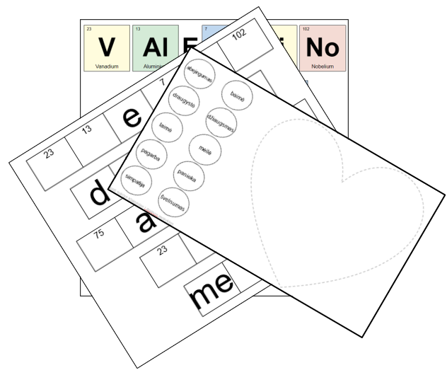Jei širdelės paslėptos kitose vietose, galima nupiešti žemėlapį, užkoduoti atsakymą vaikų, literatūrinių herojų, istorinių veikėjų varduose, skaičiuose, moksliniuose terminuose; smagu būtų širdelių vietą sužinoti ir įminus mįslę. Pvz., jeigu širdelės padėtos prie lango, tegul vaikai atsako, kas dieną ir naktį išplėtęs akis žiūri. Mįslė „Ką tik pamato, pats tuo pavirsta“ padės širdeles rasti prie veidrodžio, o mįslė „Keturios panelės po vienu stogu stovi“ pasufleruos, jog jos yra ant stalo.